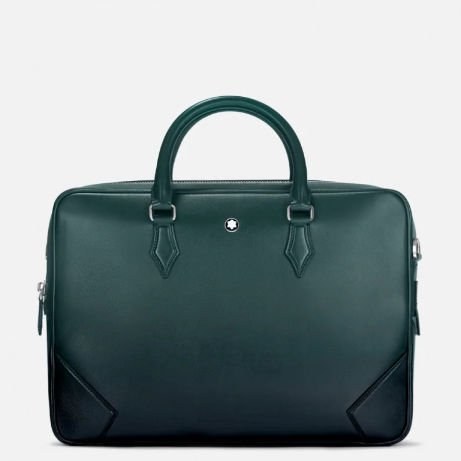 Borsa Portadocumenti Montblanc della collezione Meisterstück in pelle verde britannico Sfumato.