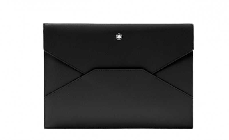 Pochette Montblanc Sartorial in pelle stampata Saffiano a forma di busta color nera. L'accessorio può essere fissato a borse grandi, portadocumenti e tote bag.