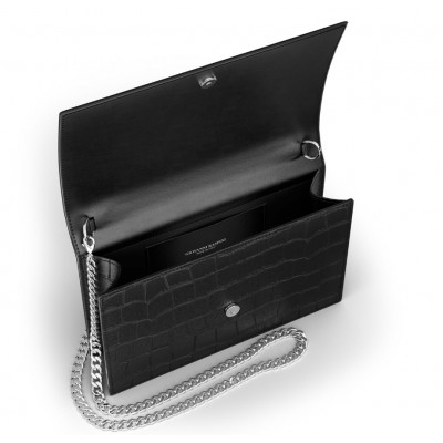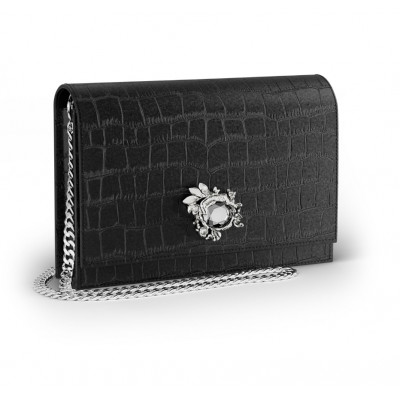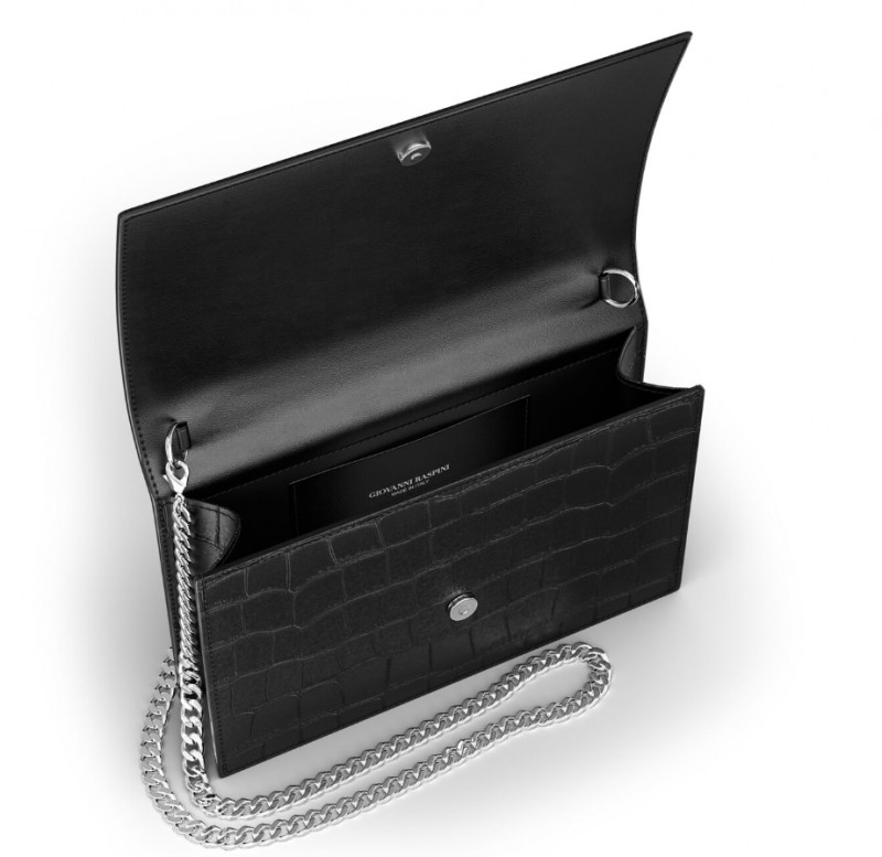 Pochette Giovanni Raspini in pelle croco nera e argento 925 della collezione Pelletteria.