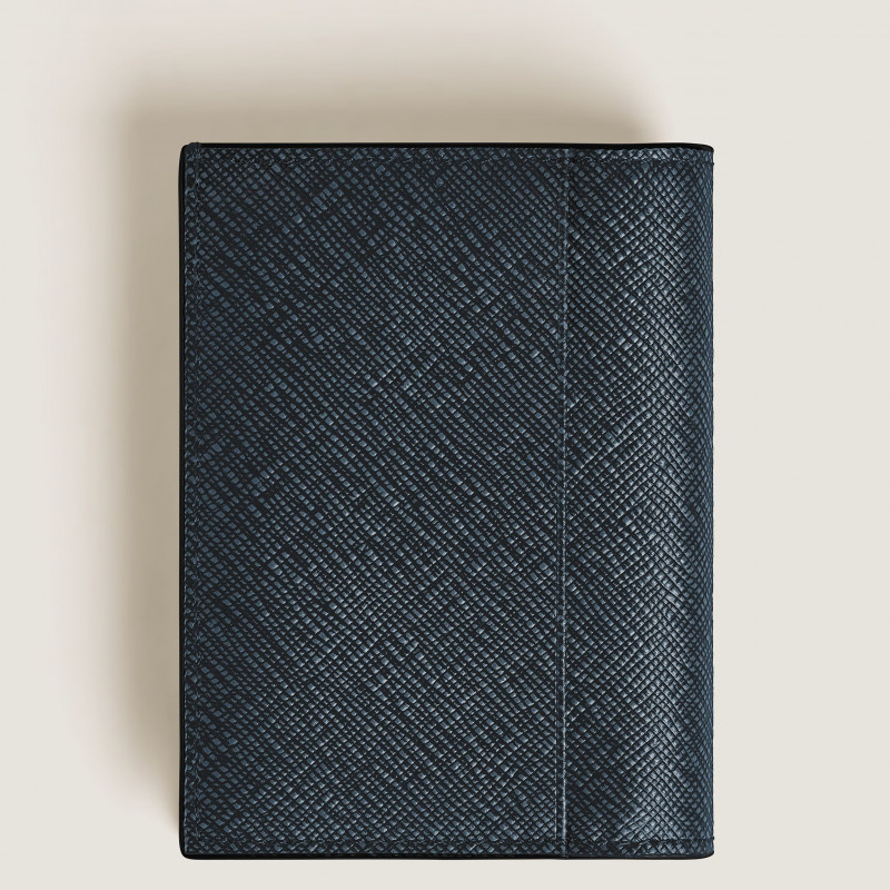 Compatto ed elegante, questo portafoglio mini è realizzato in pelle Sartorial goffrata in una raffinata combinazione di blu e nero. Ideale per chi preferisce viaggiare leggero, vanta una silhouette ricercata che si apre svelando tre aperture per carte di credito, uno scomparto per banconote e due tasche aggiuntive per poter portare tutti i tuoi oggetti essenziale coniugando semplicità e sofisticazione.
