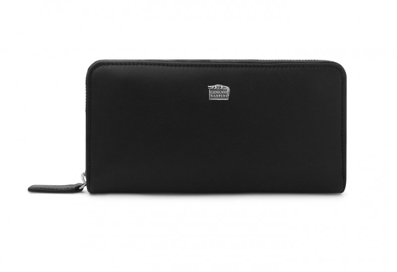 Un grande portafoglio, realizzato in pregiata pelle di vitello pieno fiore liscia nera, che unisce design e funzionalità. Il modello offre 12 scomparti portacarte, una spaziosa tasca portamonete con chiusura a zip, 3 tasche per banconote e 3 scomparti a soffietto pensati per documenti e ricevute. Una cerniera che percorre tutto il perimetro del portafoglio consente una chiusura sicura ed elegante. Questo prodotto rappresenta la massima eccellenza artigianale che da sempre contraddistingue il brand Giovanni Raspini, ed è impreziosito da un caratteristico elemento in Argento 925, realizzato in fusione a cera persa e raffigurante il logo del brand in miniatura, sovrastato dall'iconico coccodrillo. Lavorato interamente a mano in Toscana.