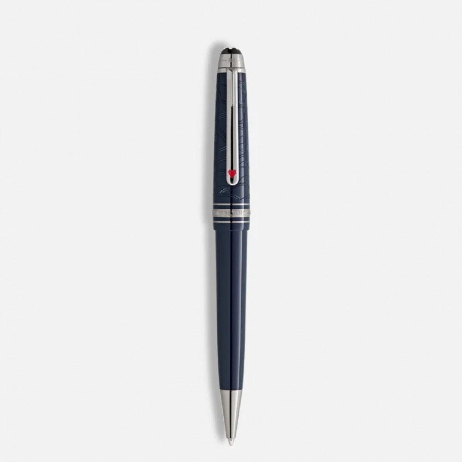 La collezione Meisterstück Around the World in 80 Days si ispira al famoso romanzo di avventura di Jules Verne “Il giro del mondo in 80 giorni”. La penna a sfera LeGrand, decorata con pregiata resina blu scura, racconta l’epico viaggio del Signor Fogg e di Passepartout. Nell’ultima tappa da Yokohama a Londra passando dagli Stati Uniti, il duo attraversa il vasto continente americano in treno. Contempla gli elaborati dettagli: un treno elegantemente inciso al laser sul cappuccio, un motivo catena di sicurezza sul cono, che riproduce un movimento rotante quando Passepartout stacca il treno dalla locomotiva per salvare l’equipaggio attaccato dai Sioux. Il design del cappuccio immortala le valvole della pressione e il fumo della locomotiva, mentre la clip sfoggia l’asso di cuori laccato rosso, simbolo dell’unione di Phileas Fogg e la principessa Auda. Inoltre i semi delle carte rappresentano l’ardita scommessa di Fogg di concludere il viaggio in soli 80 giorni. La parte superiore del cappuccio reca goffrata la cronologia del viaggio: 36 giorni da Yokohoma a Londra, che culminano nel totale di 80 giorni in giro per il mondo.