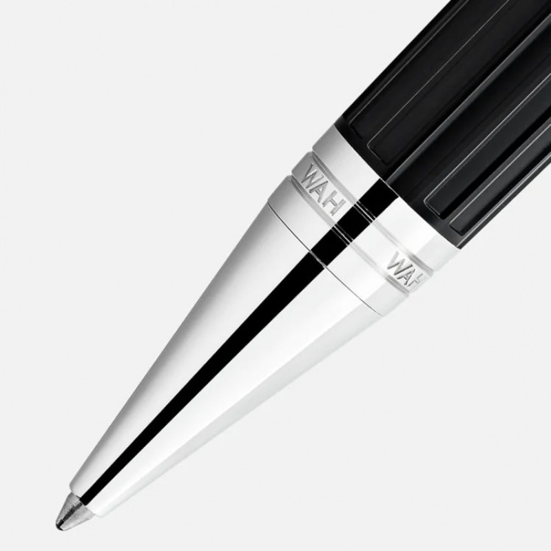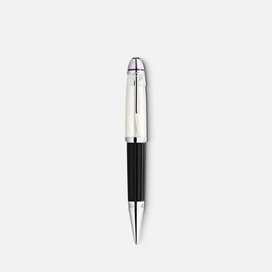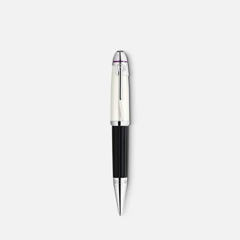Nel 2022, Montblanc rende omaggio a uno dei musicisti più celebri del XX secolo, universalmente considerato uno dei chitarristi elettrici più importanti nella storia della musica popolare: Jimi Hendrix. In pregiata resina, il colore bianco sporco del cappuccio e il suo motivo inciso si ispirano a una delle tracolle delle chitarre indossate da Hendrix, mentre il corpo nero è impreziosito da un elegante motivo che ricorda un pedale WAH. La forma della clip finitura platino ricorda la leva del vibrato di una chitarra elettrica. L’emblema Montblanc sulla parte superiore del cappuccio è in pregiata resina.