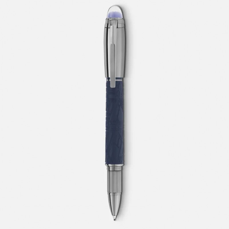 Starwalker SpaceBlue si spinge oltre il Pianeta Terra per rivolgere lo sguardo verso le stelle e la galassia. Decisamente maschile e futuristica, questa nuova collezione StarWalker presenta un nuovo look per il corpo in resina, con un design che ricorda i motivi complessi della Struttura di Widmanstätten, una delle creazioni più ipnotiche della natura. Il cappuccio e i dettagli in metallo presentano una finitura rutenio scuro, mentre la pregiata resina opaca è di un intenso colore blu spazio, che richiama le tonalità di un cielo stellato. Anche la cupoletta sulla parte superiore del cappuccio, nella quale fluttua l’emblema Montblanc, ha un intenso colore blu spazio.>