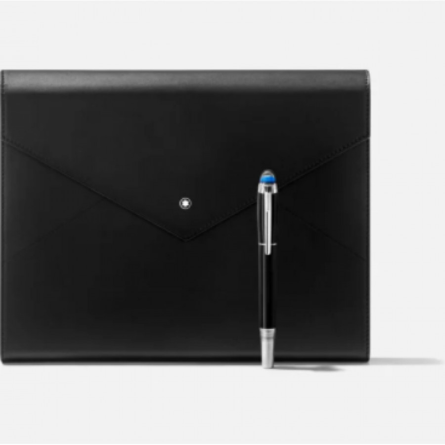 Con Montblanc Augmented Paper la tradizionale arte della scrittura entra nell’era digitale. Montblanc Augmented Paper permette di scrivere sulla carta tradizionale e archiviare tutti gli appunti e gli schizzi, grazie al digitalizzatore incluso nella custodia in pelle, e di trasmettere gli appunti al dispositivo mobile attraverso la tecnologia Bluetooth tramite l’app Montblanc Hub. • Trasformare gli appunti scritti a mano in testo digitale • Modificare, ricercare e organizzare gli appunti digitalizzati • Presentare gli appunti scritti a mano su uno schermo con la modalità Live • Condividere gli appunti in vari formati con un semplice clic • Personalizzare gli appunti applicando template personalizzati Il Set Augmented Paper comprende un blocco note con fogli a righe e una penna a sfera Montblanc StarWalker in una busta in pelle.