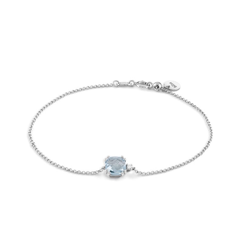 Bracciale Bliss della collezione Joy Candy in oro bianco con topazio azzurro e diamante.
