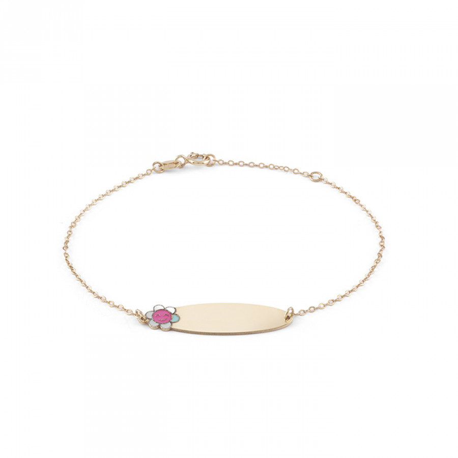 Bracciale in oro giallo 9 kt con ciondolo Fiore con smalto