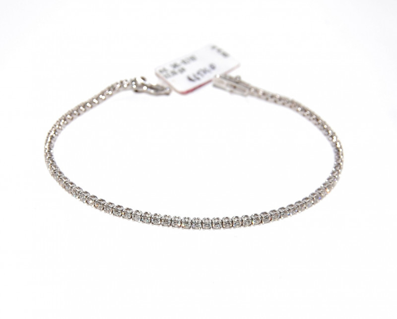 Bracciale tennis da donna o da uomo Crivelli in oro bianco 750 ‰ con diamanti naturali bianchi da p.ct. 1, colore G, purezza SI. Peso 7.1 g. CATEGORIA: Bracciale MATERIALE: Oro bianco 750 ‰ - Oro bianco 18k PIETRE: Diamanti - P.Ct. 1 - G colore - SI purezza - Taglio brillante PESO: 7.1 gr SPESSORE: 2.37 mm LUNGHEZZA: 18 cm Made in Italy.
