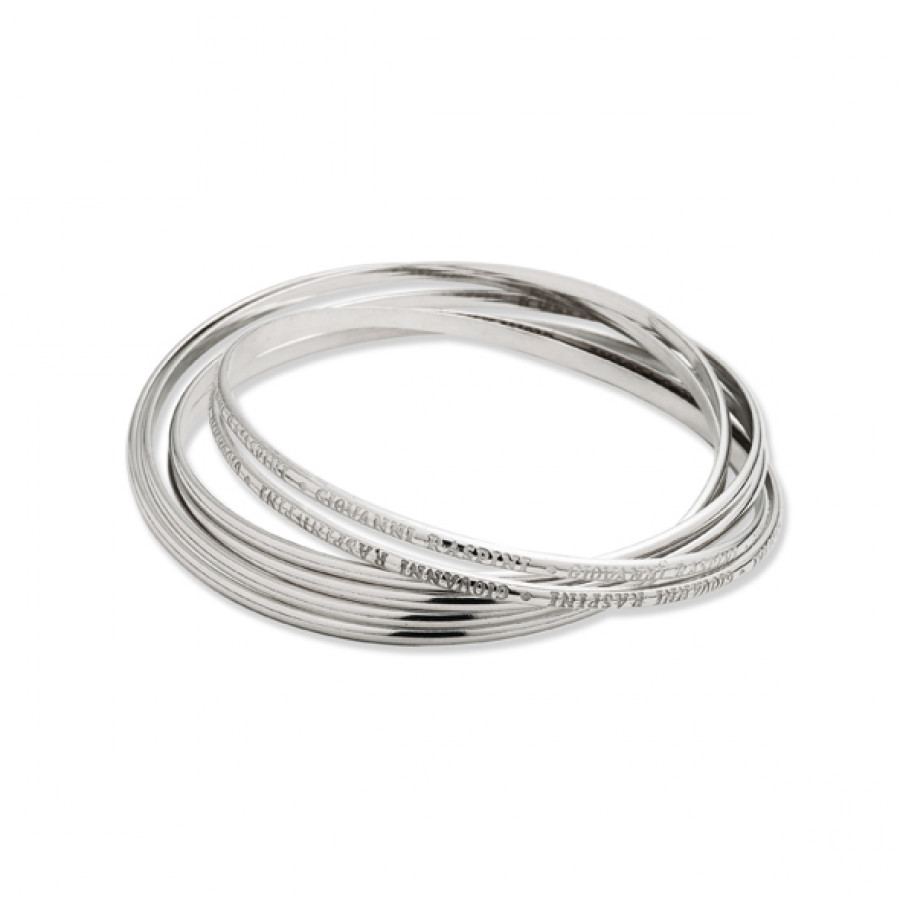 Collezione Logo - E' il sogno argenteo della bellezza semplice che si caratterizza per la texture arricchita dalla presenza del logo grafico di Giovanni Raspini. Il volume come unico elemento decorativo assieme al logo. La leggerezza come metafora dello sguardo futuro.
