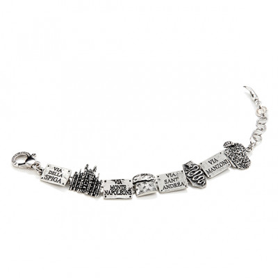Giovanni Raspini dedica un bracciale alla splendida città di Milano: il Duomo, il panettone, lo stemma degli Sforza, la celebre cotoletta, oltre alle principali vie della città.