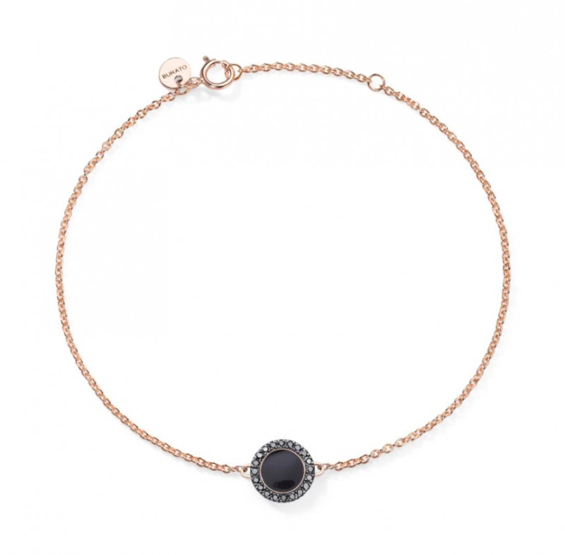 Bracciale in oro rosa e smalto chocolate con paillettes medie e diamanti della collezione Paillette di Burato Gioielli.