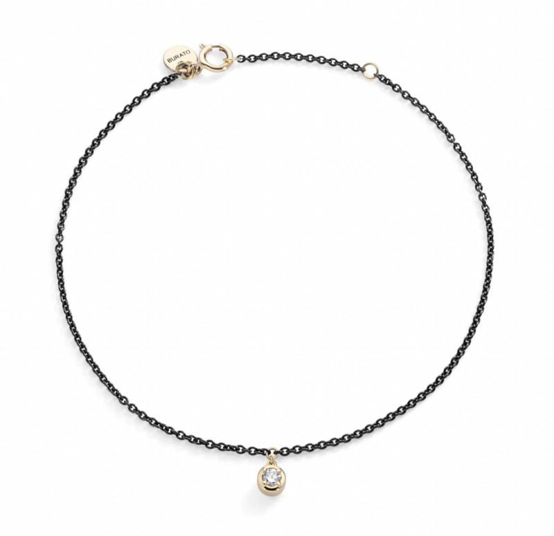 Bracciale Burato Gioielli in oro giallo 18 carati con catena fashion in argento PVD nero con diamante bianco taglio rotondo.