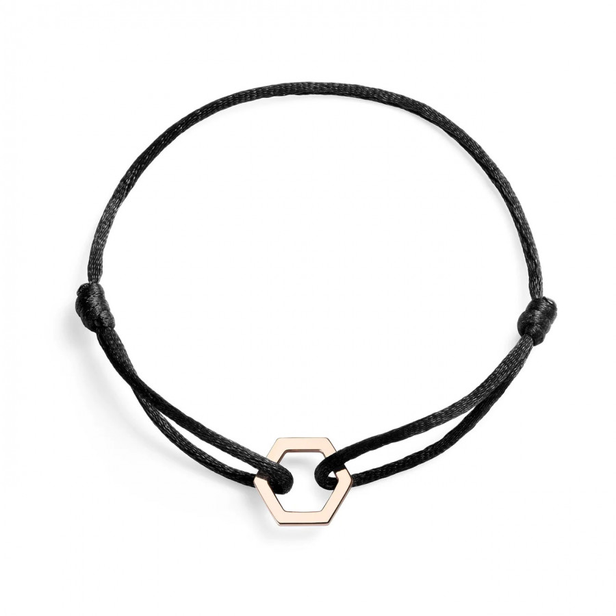 Un delicato esagono in oro rosa 18 carati abbinato a un sottile bracciale in raso nero è una dichiarazione visiva di uguaglianza, vita e unità. Pensato per essere indossato da tutti i generi, Amuleto Satin Pink Gold S è un bracciale dedicato a chi vuole indossare un simbolo dei propri valori.