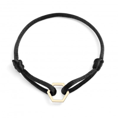 Un elegante bracciale in satin con un esagono in oro giallo per celebrare la "Vita" con un gioiello raffinato e dal design gender neutral.