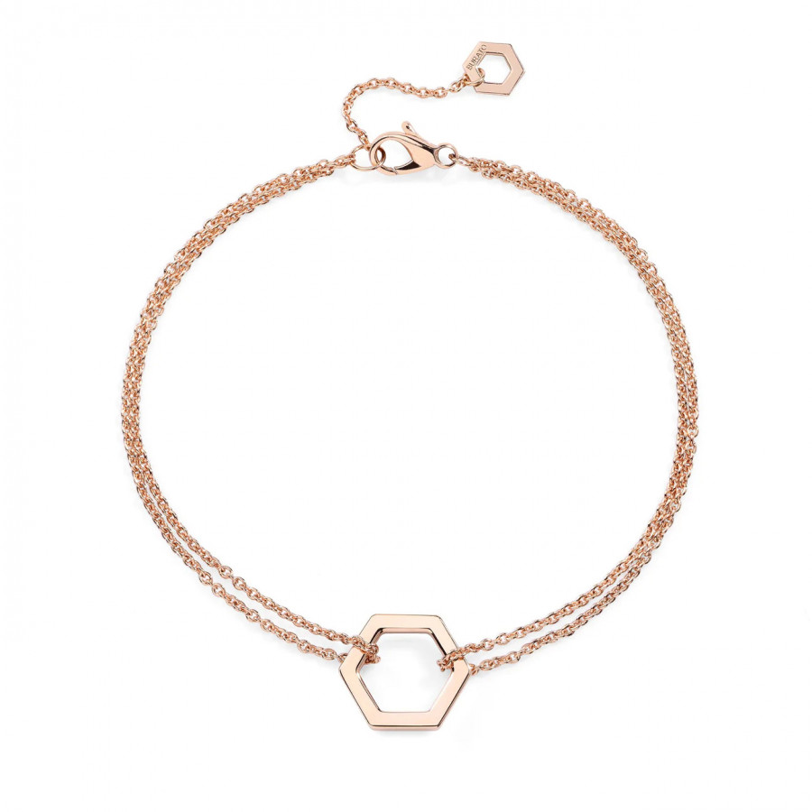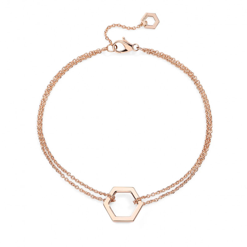 Essenziale e chiaro, come le cose più belle della vita. Prova il design lineare della forma esagonale del bracciale Amuleto oro rosa catena S nella dolcezza dell'oro rosa 18 carati.