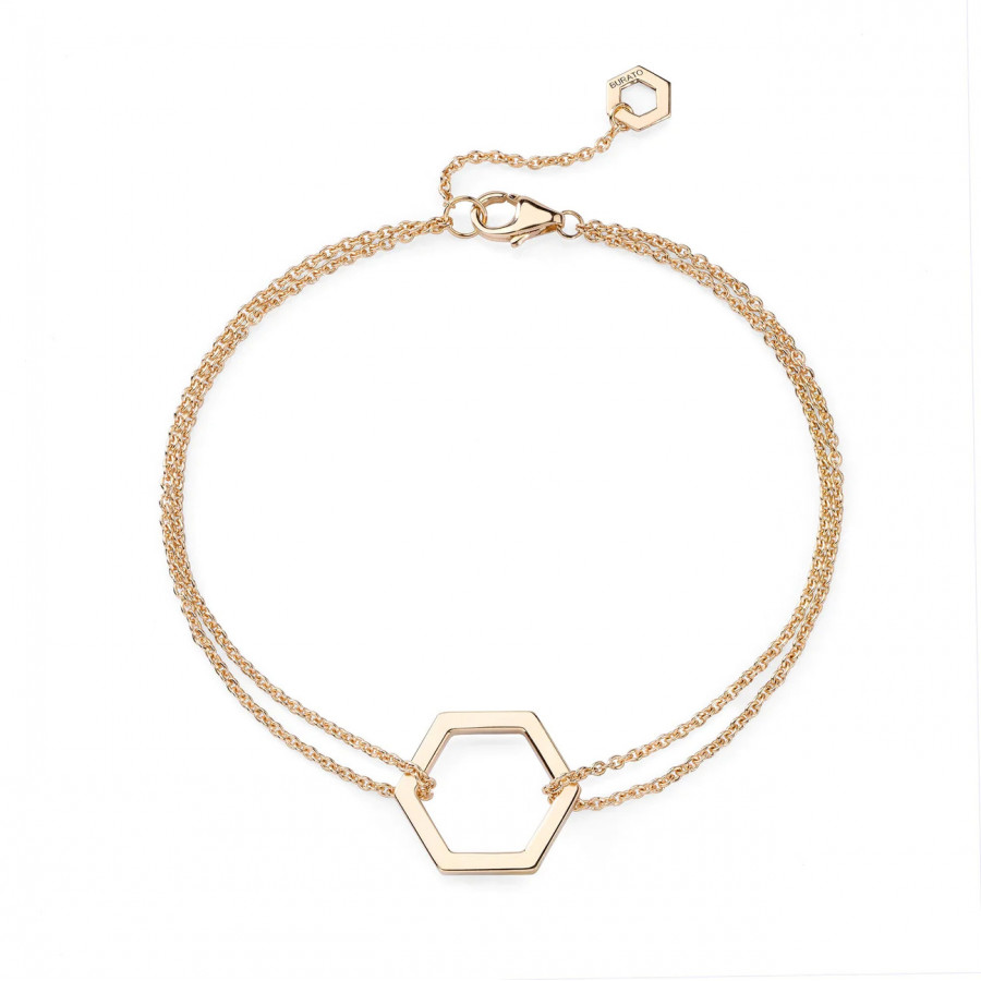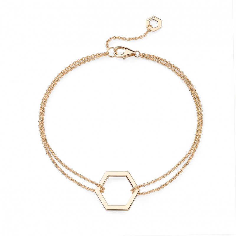 Il bracciale Amuleto oro giallo catena M combina l'eleganza della forma esagonale con la brillantezza dell'oro rosa 18 carati. Perfetto per ogni occasione, questo braccialetto aggiunge un tocco sofisticato e portafortuna al tuo outfit.