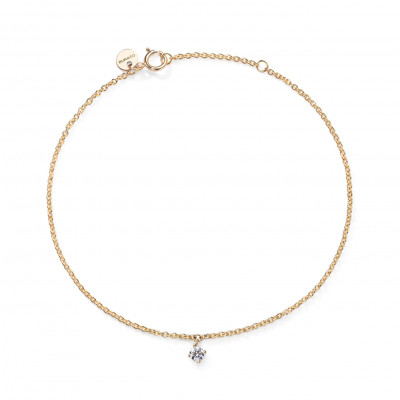 Bracciale in oro giallo 18 kt a catena morbida con diamante solitario con taglio rotondo ct. 0,05 F VVS.