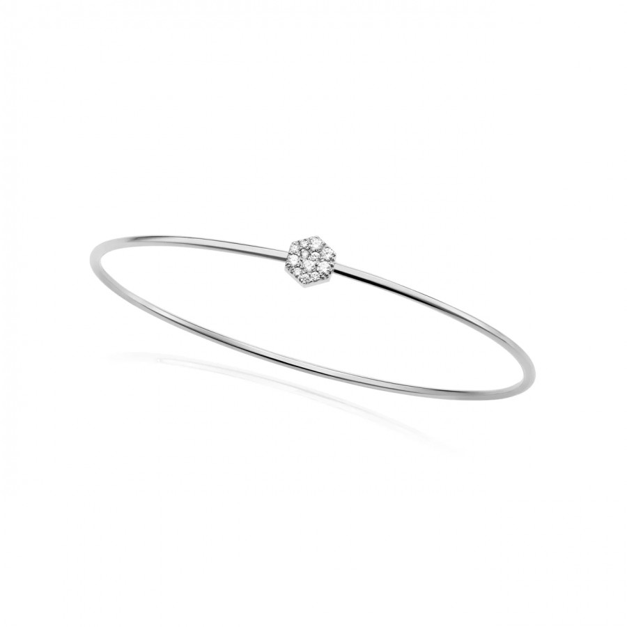 L’eleganza del bangle Amuleto White risiede nella purezza del design, un filo d’oro dalla sezione esagonale con un esagono prezioso in oro bianco e diamanti. Un vero must-have per elevare con delicatezza e freschezza ogni look.