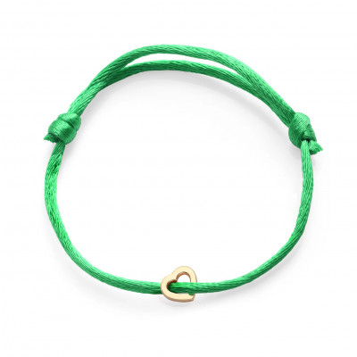 Bracciale con ciondolo cuore in oro giallo 18 kt in nastro verde