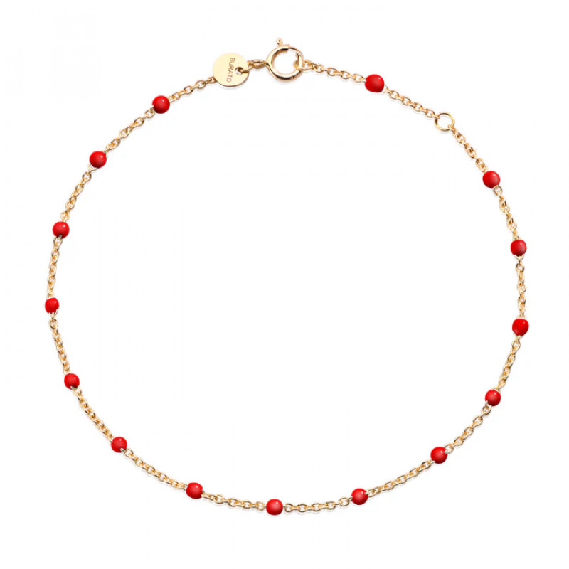 Bracciale Burato Gioielli in oro giallo 18 kt e sfere in resina rossa della collezione Dots