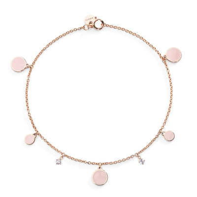 Bracciale in oro rosa 18k, smalto rosa e diamanti taglio brillante ct. 0.12 GVVS