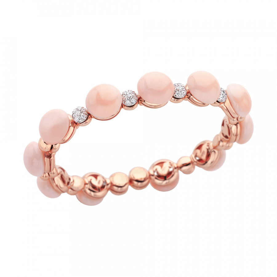 Bracciale Chantecler in oro rosa, diamanti e corallo rosa, appartenente alla collezione Bon Bon.