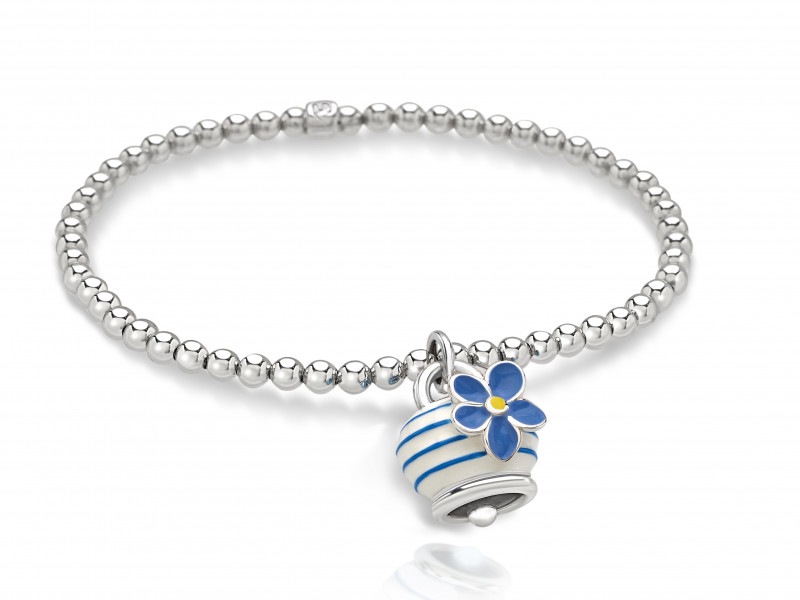 Bracciale Et Voilà elastico campanella micro non ti scordar di me in argento, smalto bianco, turchese e giallo, appartenente alla collezione Et Voilà di Chantecler