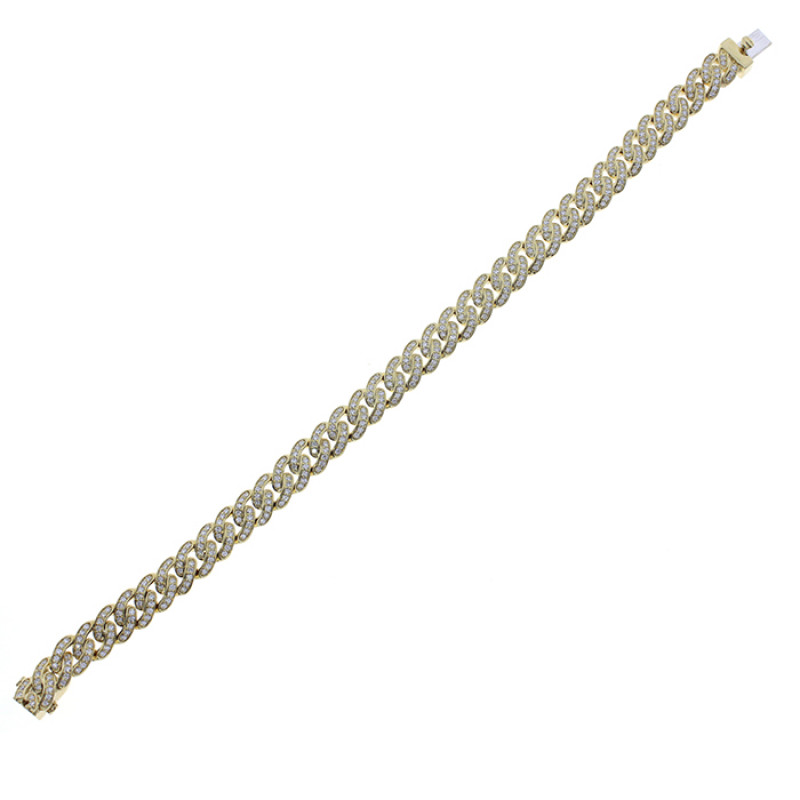 Bracciale in Oro giallo 18 kt con pavé di diamanti ct 1.9 taglio brillante rotondo, colore GH, cm 17.5