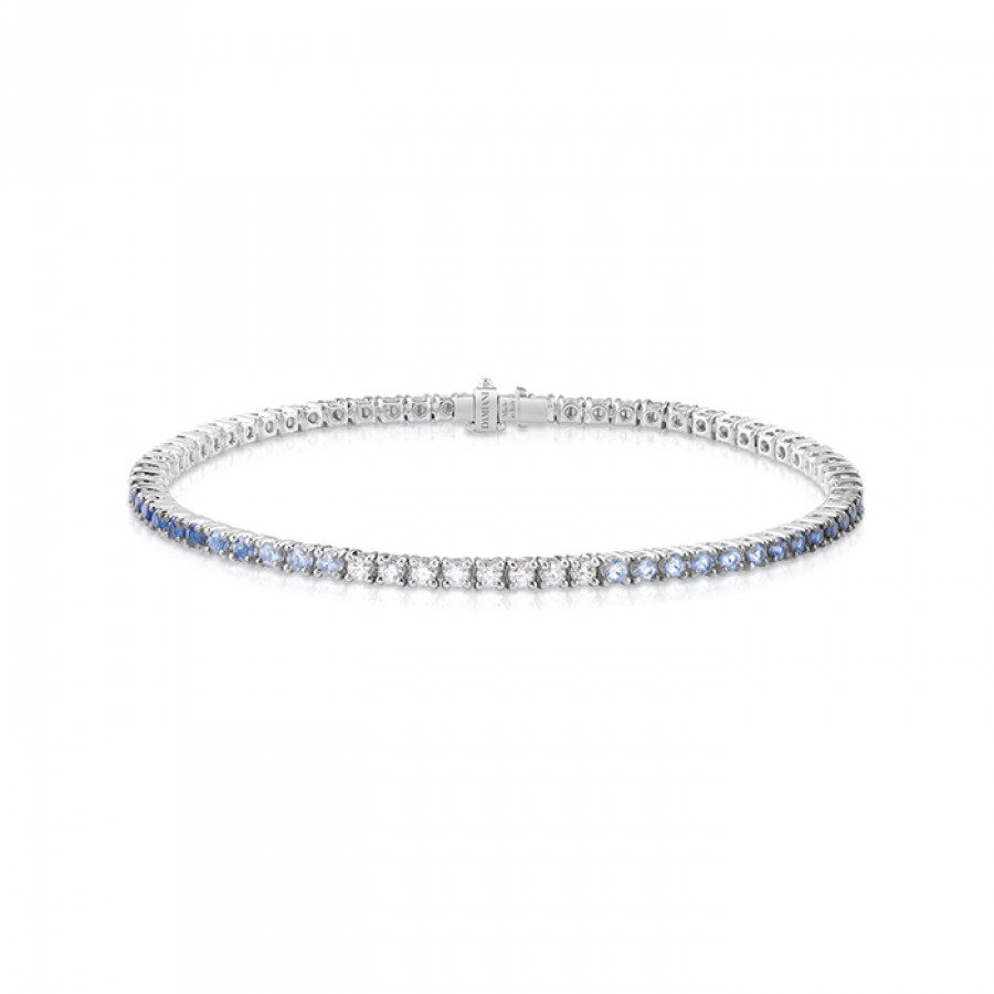 Bracciale tennis Damiani in oro bianco con diamanti 0,64 ct GH e zaffiri 2,65 ct della collezione Timeless