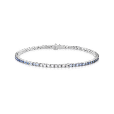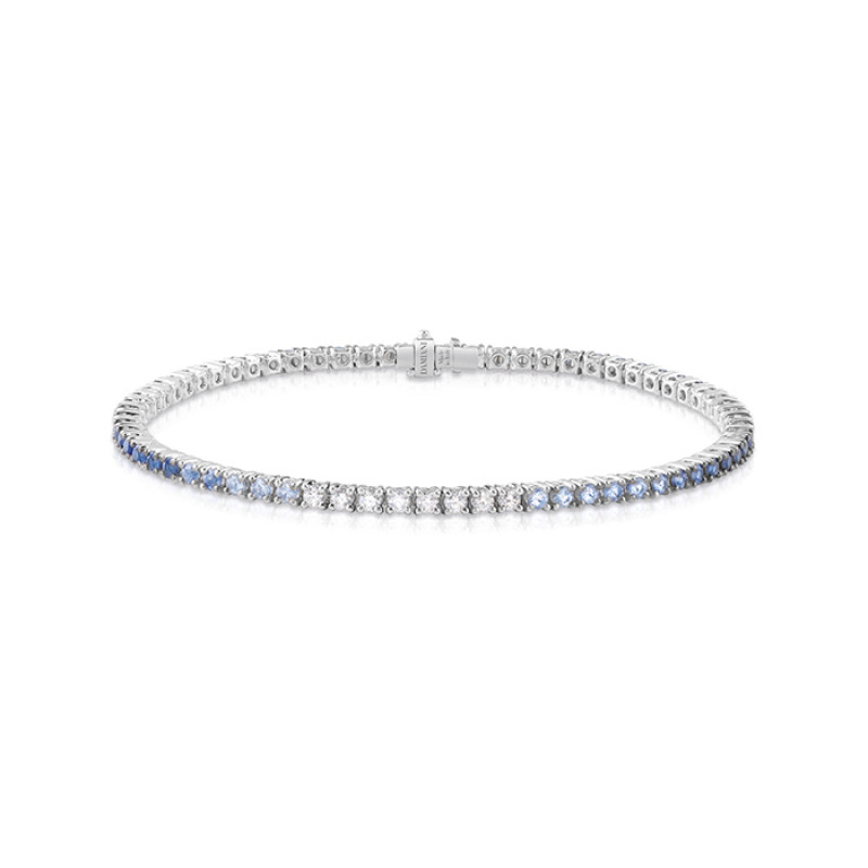Bracciale tennis in oro bianco 18 kt con diamanti 0,64 ct GH e zaffiri 2,65 ct