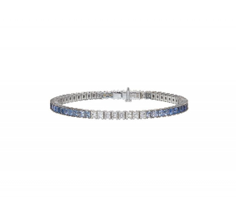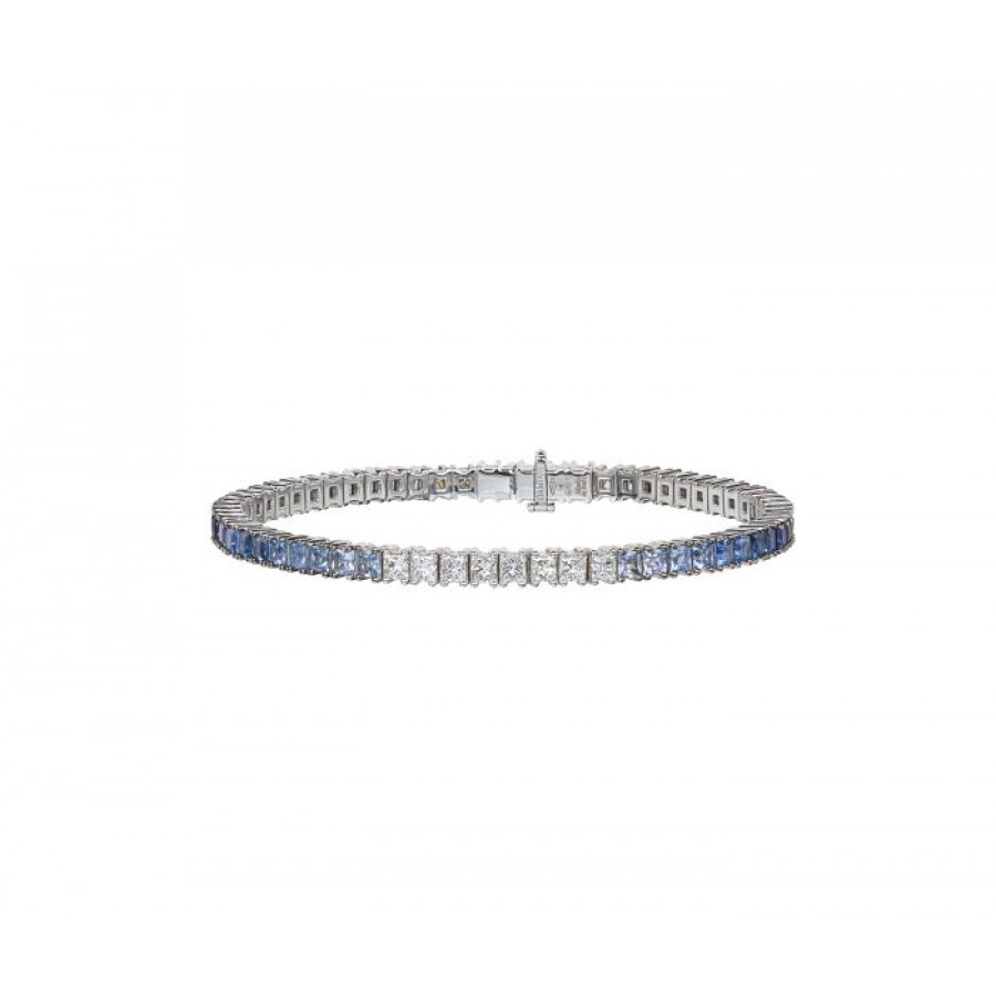 Bracciale tennis in oro bianco 18 kt con diamanti 1,4 ct GH e zaffiri 5,7 ct