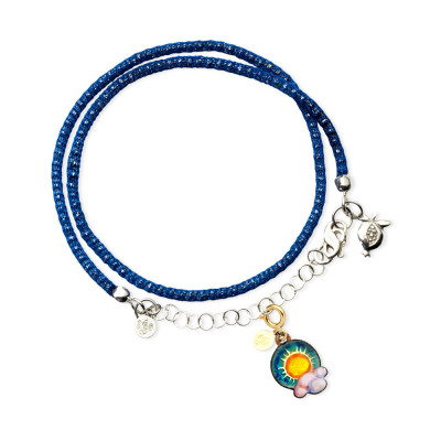 La collana in maglia metallica, lunghezza 42cm – Colore Blu, presenta una chiusura in Argento massiccio 925 e medaglietta a forma un melograno, auspicio di abbondanza e fortuna.