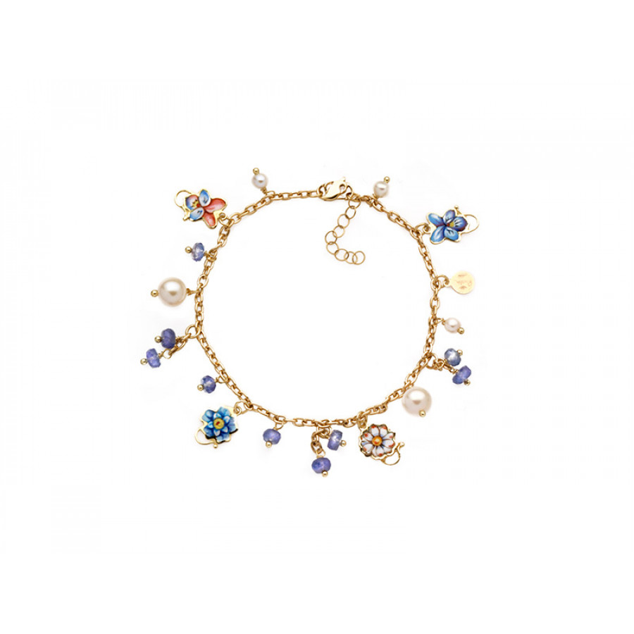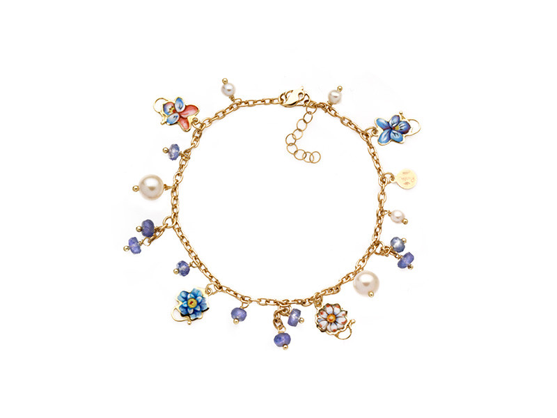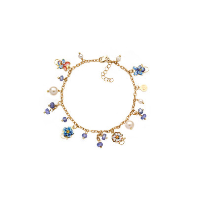 Bracciale Gabriella Rivalta in oro miniato Fiorellini Grandi Azzurri, collezione Fiori