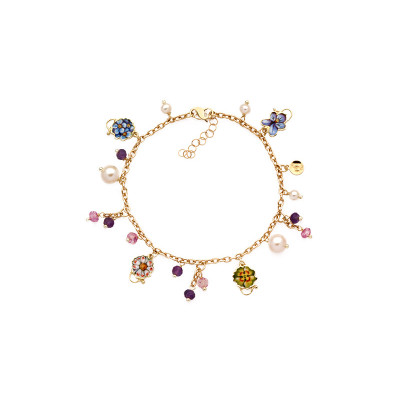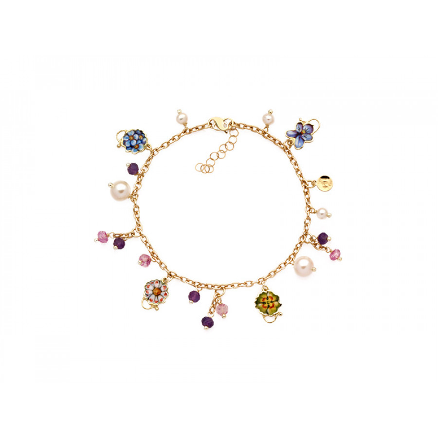 Bracciale Gabriella Rivalta in oro miniato Fiorellini Grandi Viola, collezione Fiori