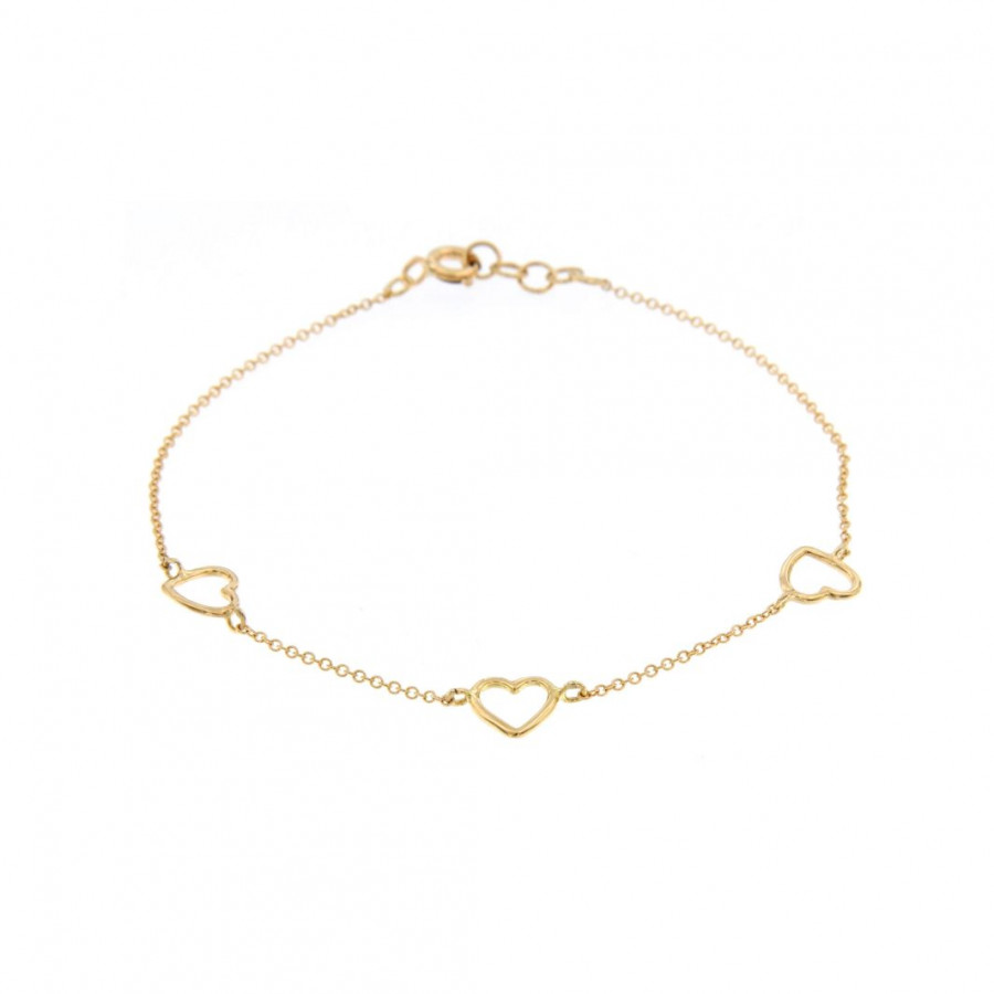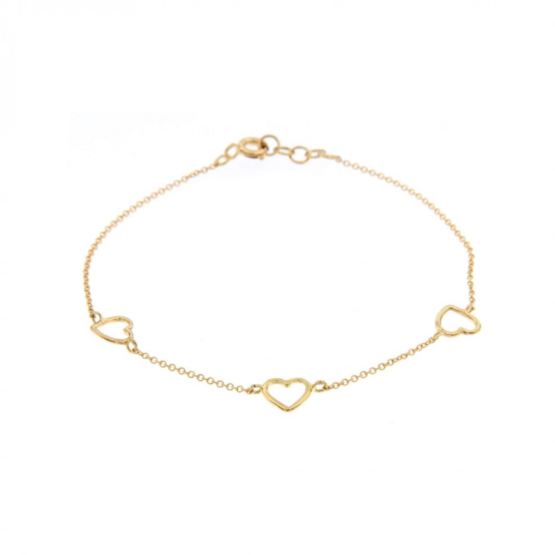 Bracciale catena in oro giallo con cuoricini a filo
