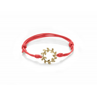 Bracciale in oro giallo o in oro rosa 18 kt con il cordino e foglie a lastra.