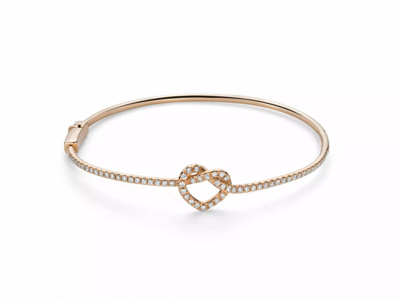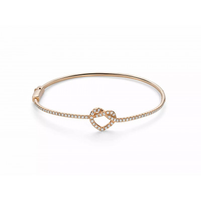 Bracciale rigido in oro rosa 18k Cuore a nodo con diamanti 0,62 ct.