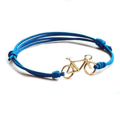 Bracciale con cordino regolabile con ciondolo a forma di bicicletta in oro giallo dalla collezione Marco Gerbella Piccole Gioie.