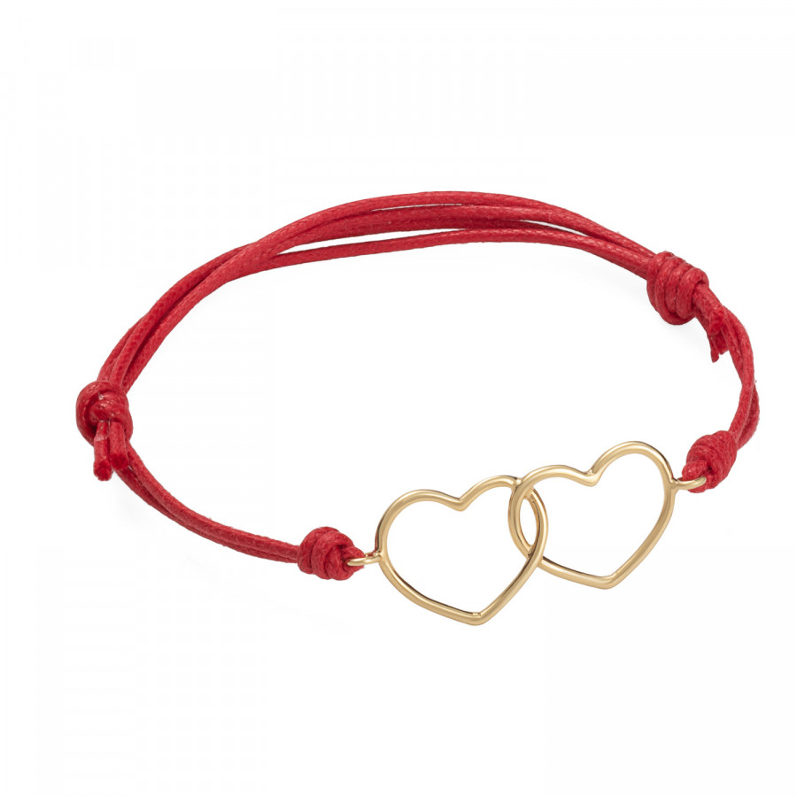Bracciale con Cuori a filo in oro giallo con cordoncino