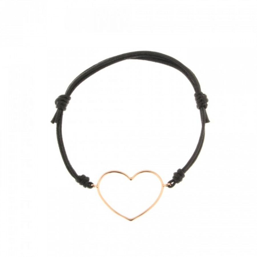 Bracciale con cordino regolabile con ciondolo a forma di cuore in oro rosa dalla collezione Marco Gerbella Piccole Gioie.