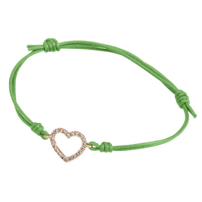 Bracciale con cordino regolabile con ciondolo a forma di cuore in oro rosa o bianco e diamanti 0.16 ct. dalla collezione Marco Gerbella Piccole Gioie.