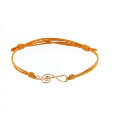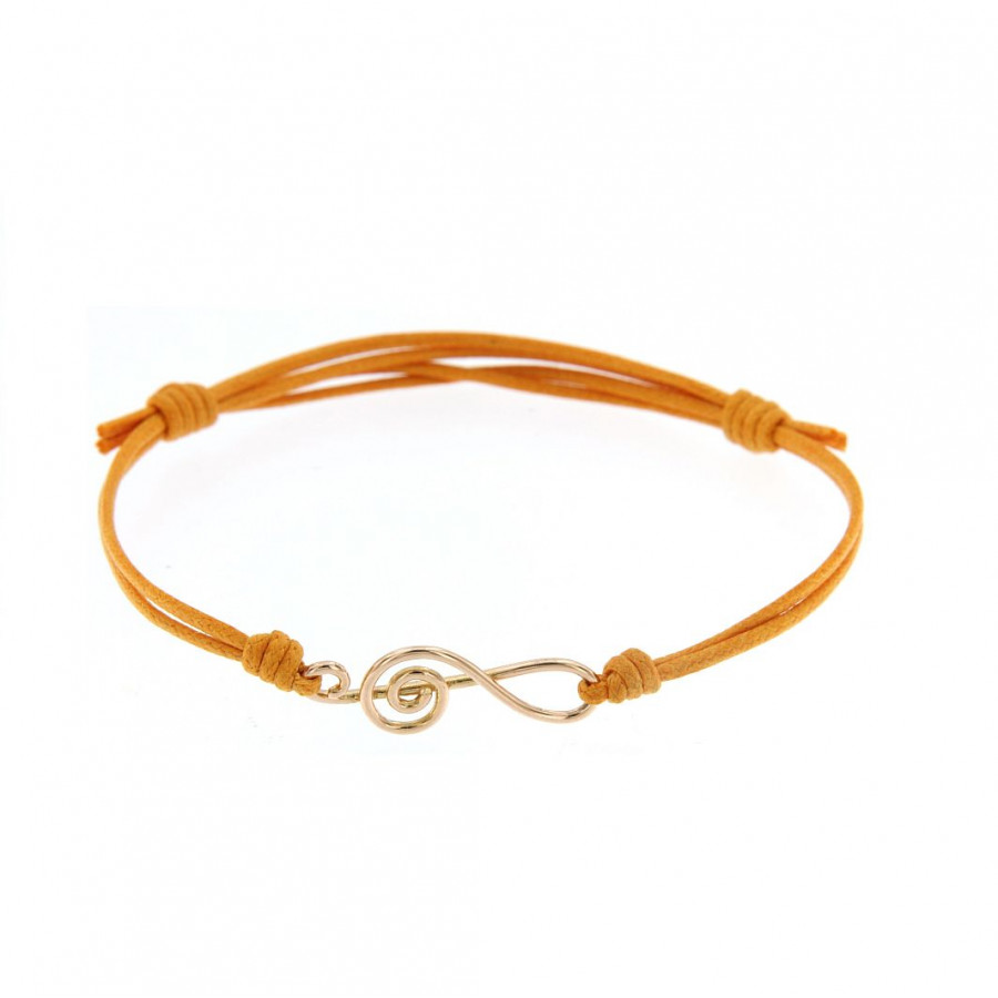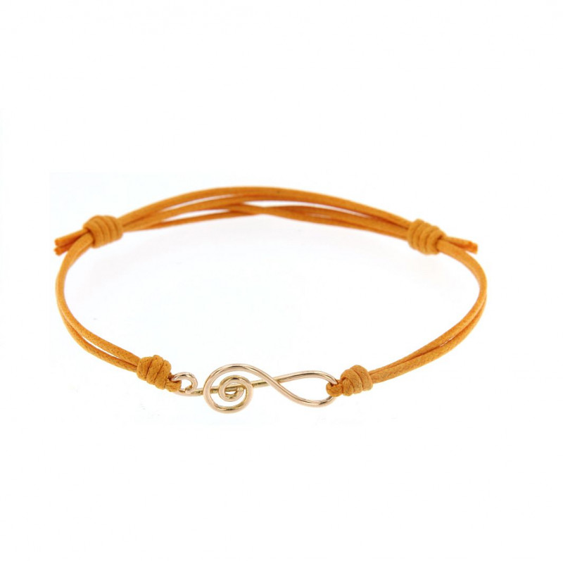 Bracciale con Chiave di violino a filo in oro giallo con cordoncino