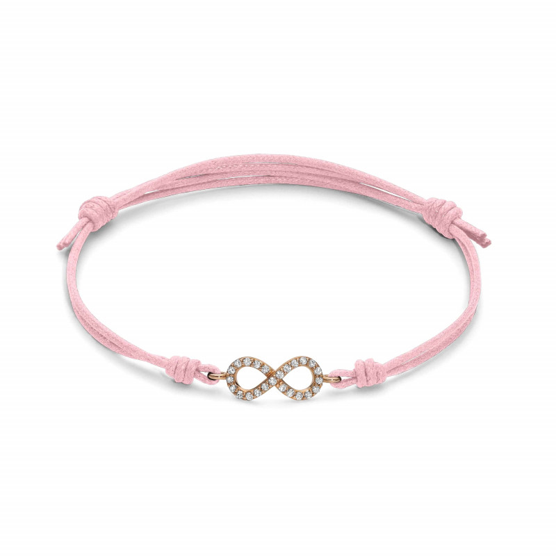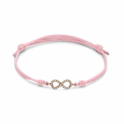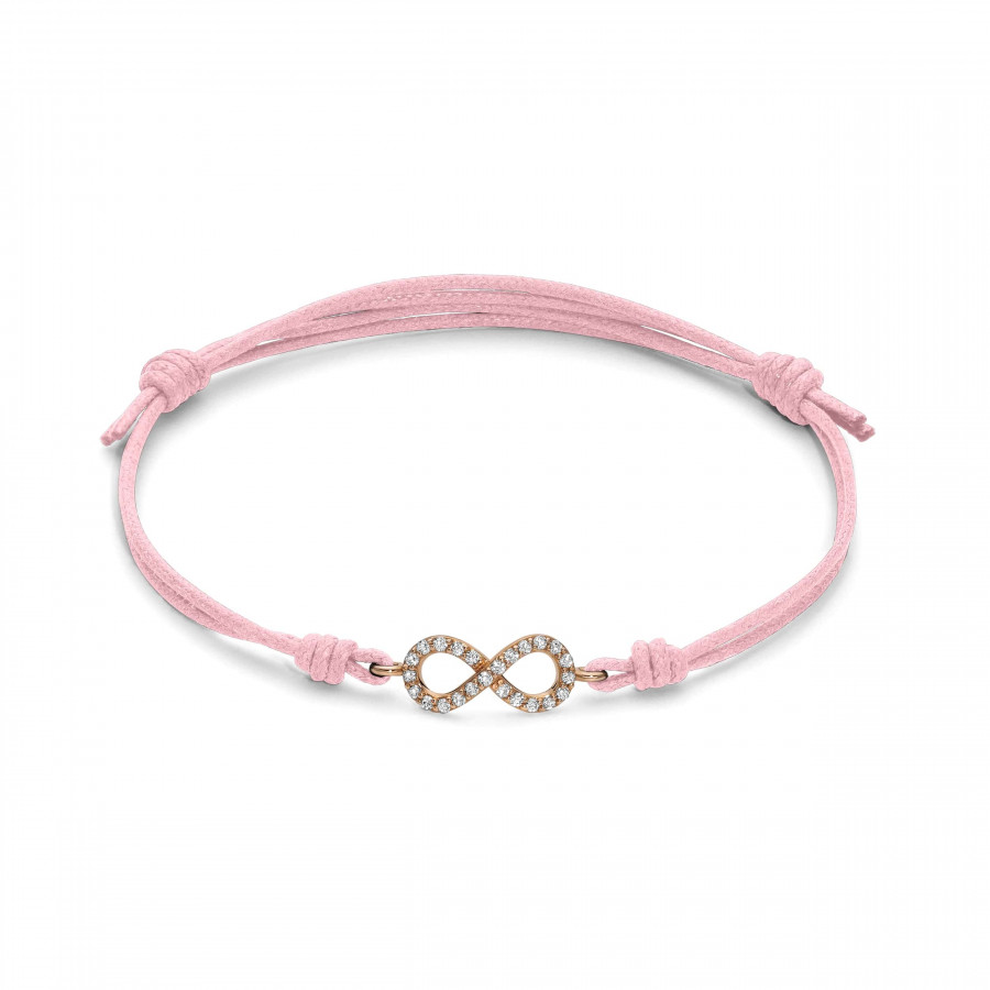 Bracciale con Infinito a filo in oro rosa e diamanti 0,20 ct. con cordoncino