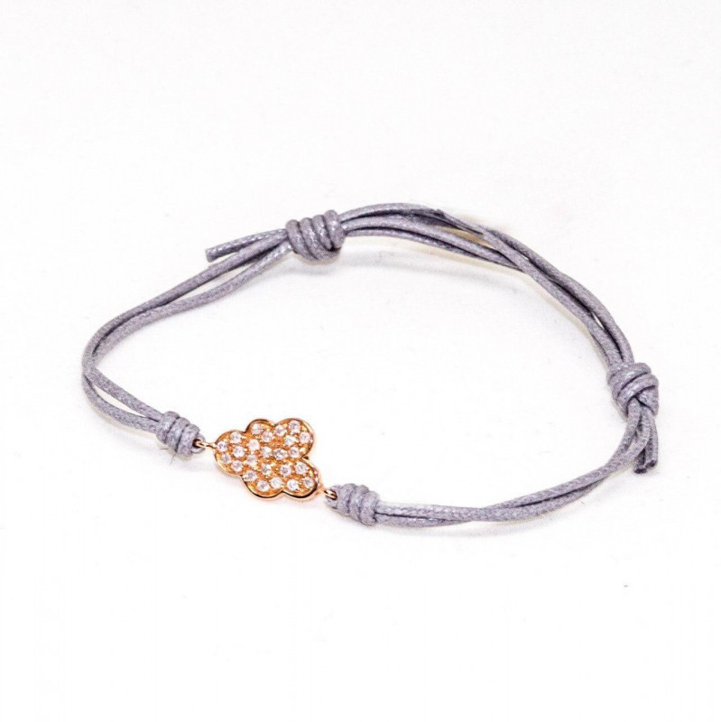 Bracciale con cordino e simbolo Nuvola a lastra in oro rosa e diamanti ct 0.17