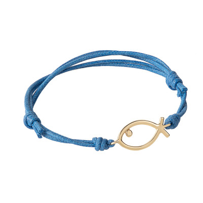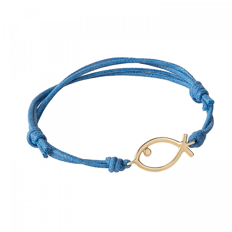 Bracciale con cordino regolabile con ciondolo a forma di pesce piccolo in oro dalla collezione Marco Gerbella Piccole Gioie.