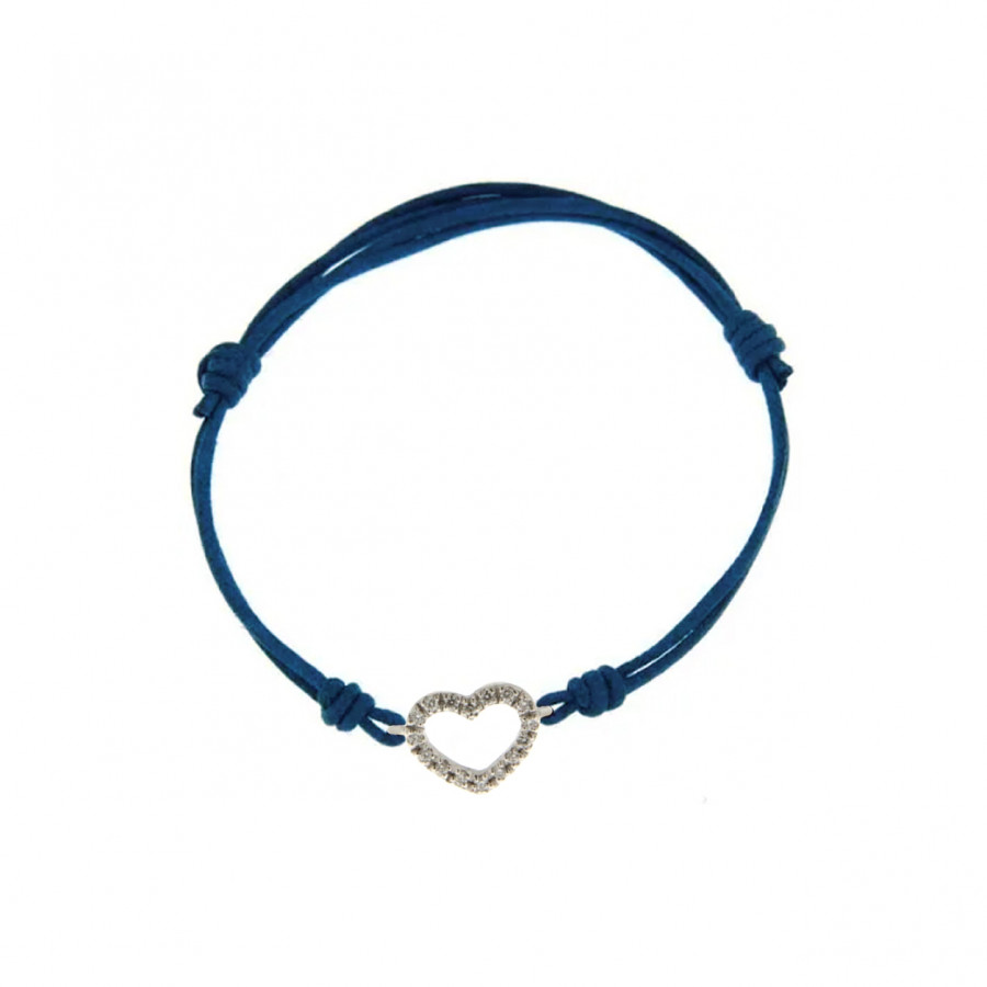 Bracciale con Cuore a filo in oro bianco e diamanti con cordoncino