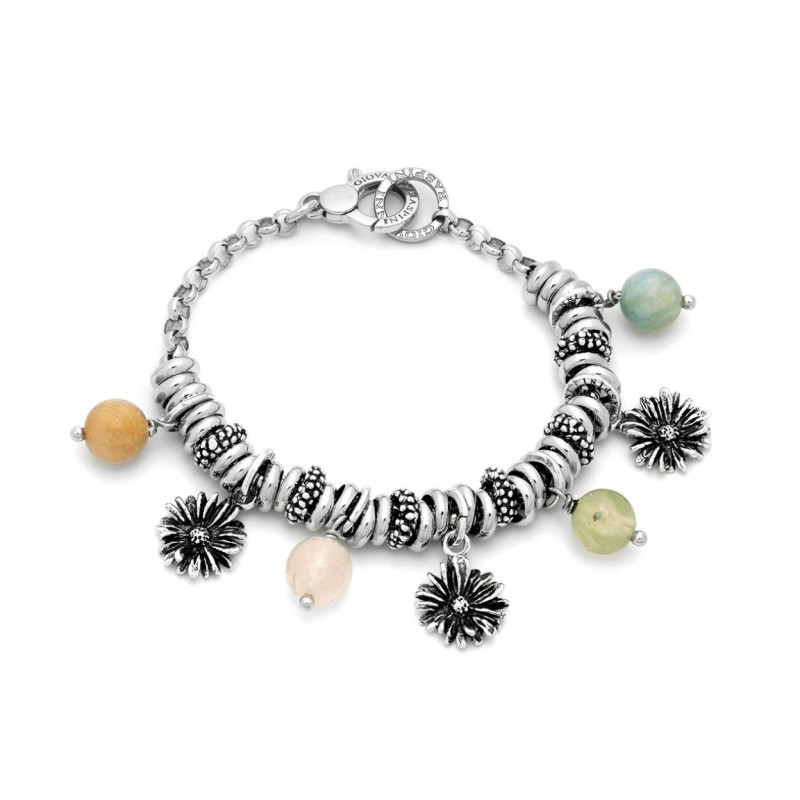 Bracciale Giovanni Raspini Margherite Color in Argento 925, prehnite, quarzo rosa, cristallo di rocca e acquamarina della collezione Charms.
