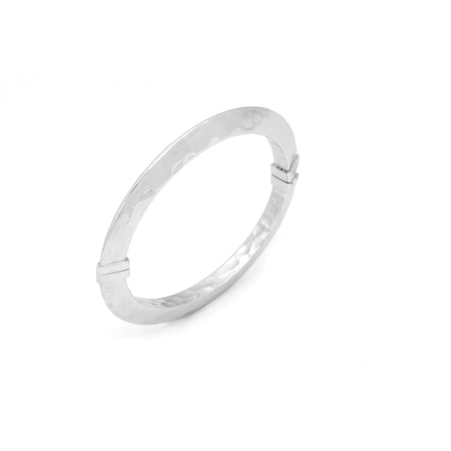 Questo bracciale è un connubio tra l'argento martellato, ultra luminoso, e l'eleganza di forme decise, per chi ama un gioiello di forte personalità e dal segno essenziale. Un bracciale minimal e grintoso, da portare sempre con sé.