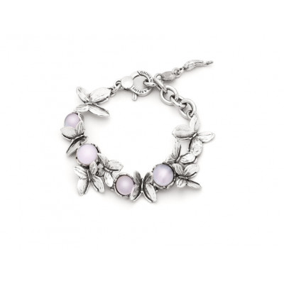 Un elegante connubio fra il decoro in argento brunito e le delicate nuance rosa delle quattro pietre cabochon danno vita questo affascinante bracciale. Il volo della farfalla si fa gioiello contemporaneo. Fatto completamente a mano in azienda.