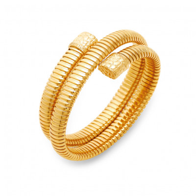Nato dall’eleganza iconica della maglia tubogas, questo bracciale in argento dorato richiama la grande tradizione della gioielleria del Novecento. Giovanni Raspini lo personalizza mediante il segno iconico della texture di coccodrillo che caratterizza le due estremità, realizzate in argento fuso a cera persa.